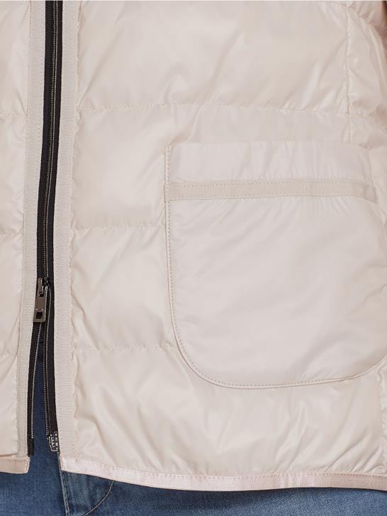 Prachtige outdoorjas met iets verlengde, wijde snit. Het gewatteerde outdoorjack is gemaakt van edele glanzende geweven kwaliteit en is voorzien van een tweewegritssluiting, opgestikte zakken en elastische manchetten.