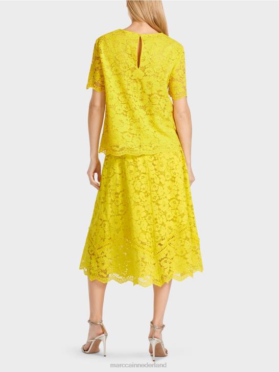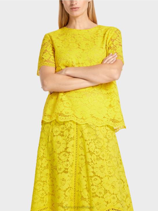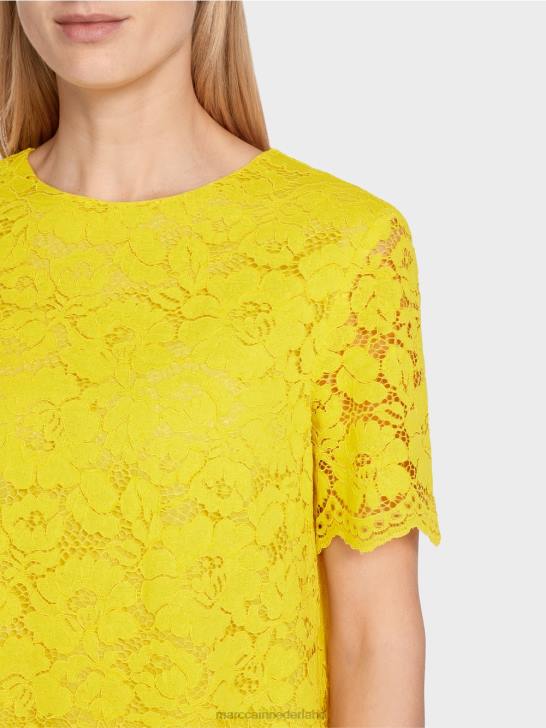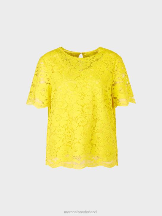 kleding citroen groen 464J943 blouse van kantstof Marc Cain