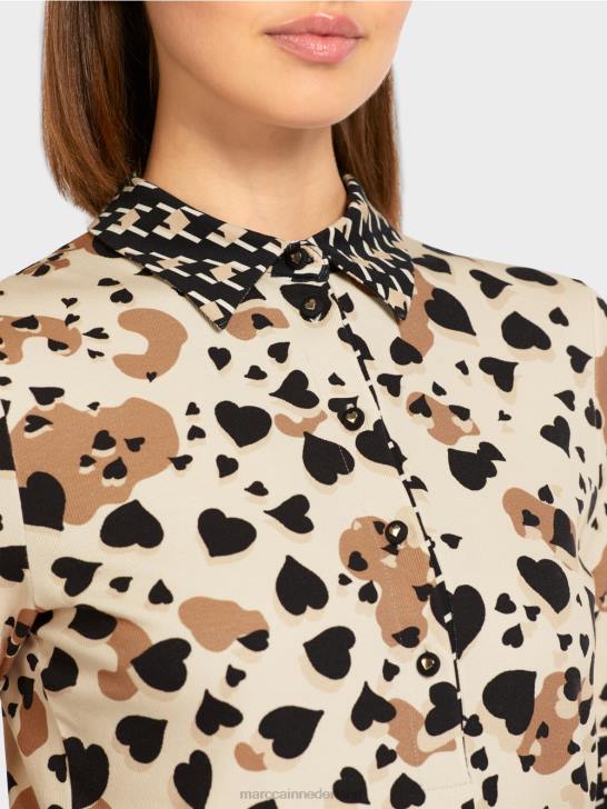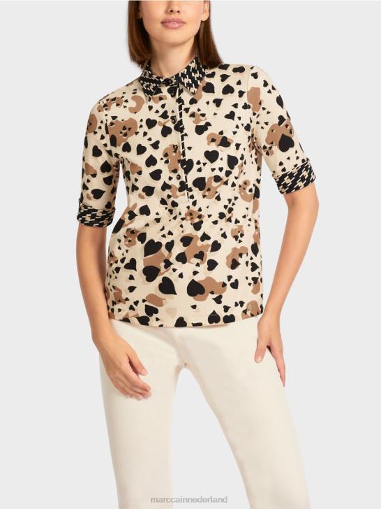 Home| kleding| kleding crème 464J1449 bedrukt poloshirt Marc Cain