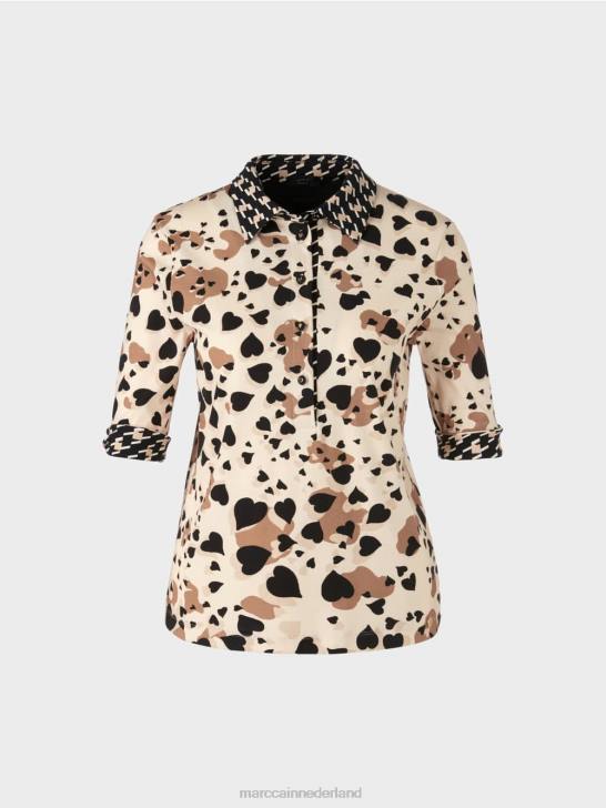 kleding crème 464J1449 bedrukt poloshirt Marc Cain
