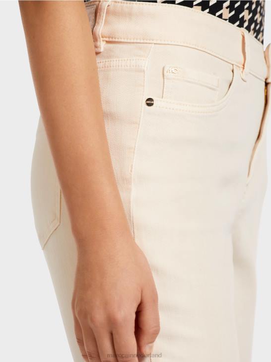 slim fit jeans met normale tailleband van het duurzaamheidslabel "rethink Together". kleurrijke jeans in klassiek 5-pocket-design met ritssluiting. ze zijn enkellang en afgewerkt met een gerafelde zoom en kleine zijsplitten.