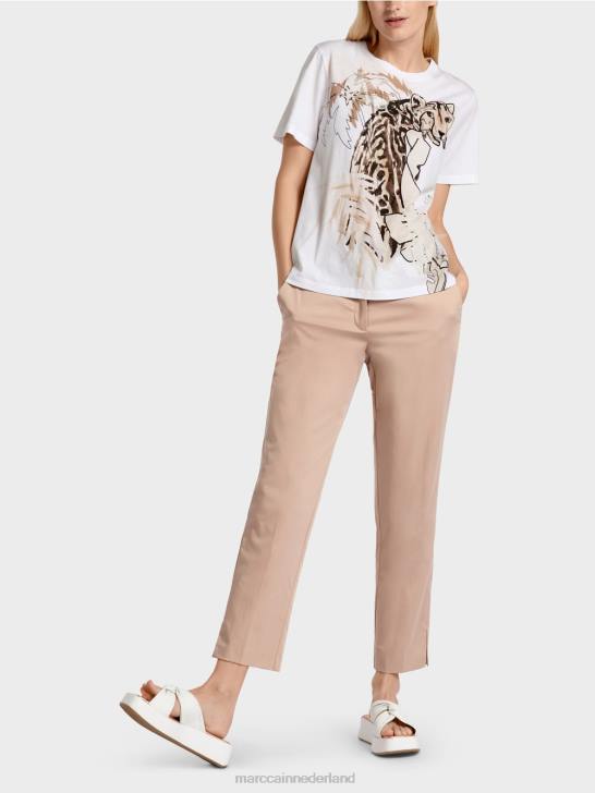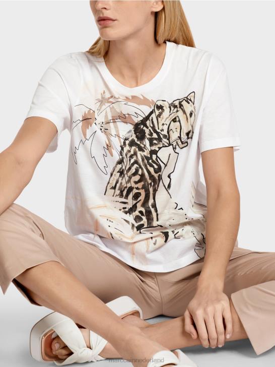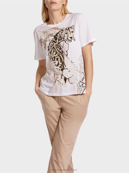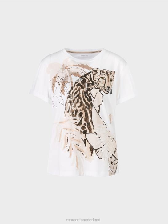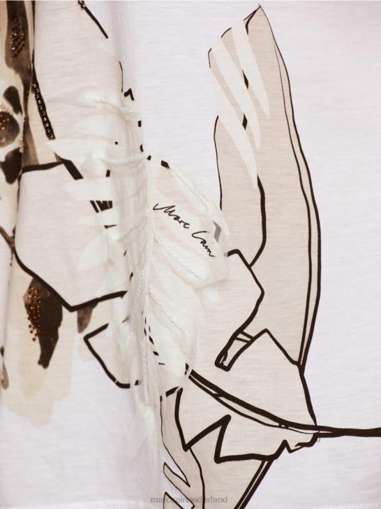 dit t-shirt is gemaakt van lichtgewicht en zacht katoen. de voorkant is voorzien van een collageachtig motief van tropische fauna en flora. geappliqueerde pailletten, kralen en elementen in een doorzichtige stof geven het motief opvallende accenten.