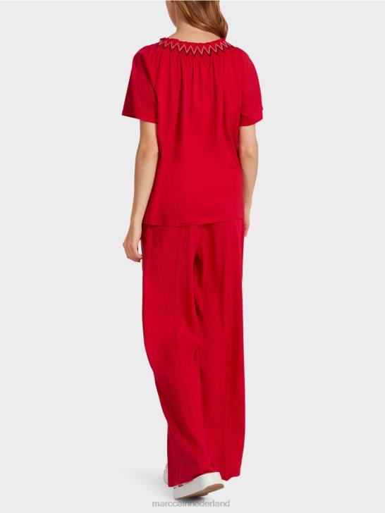 de breedte van de top kan aangepast worden door de plooitjes bij de halslijn. de elastische mouwzoom is geïnspireerd op traditionele vakmanschapstechnieken en ziet eruit als een geborduurde rand. het zachte materiaal geeft de top zijn figuuraccentuerende stijl.
