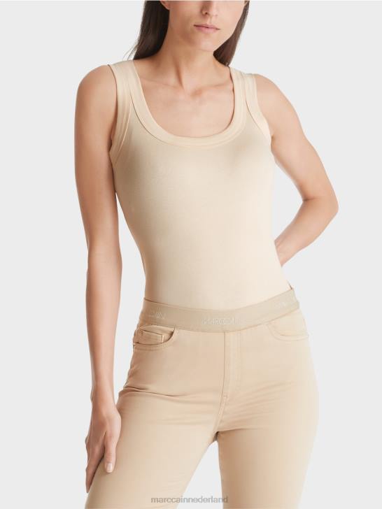 Home| kleding| overhemden en topjes| kleding donkere crème 464J1345 fijngeribde tanktop Marc Cain