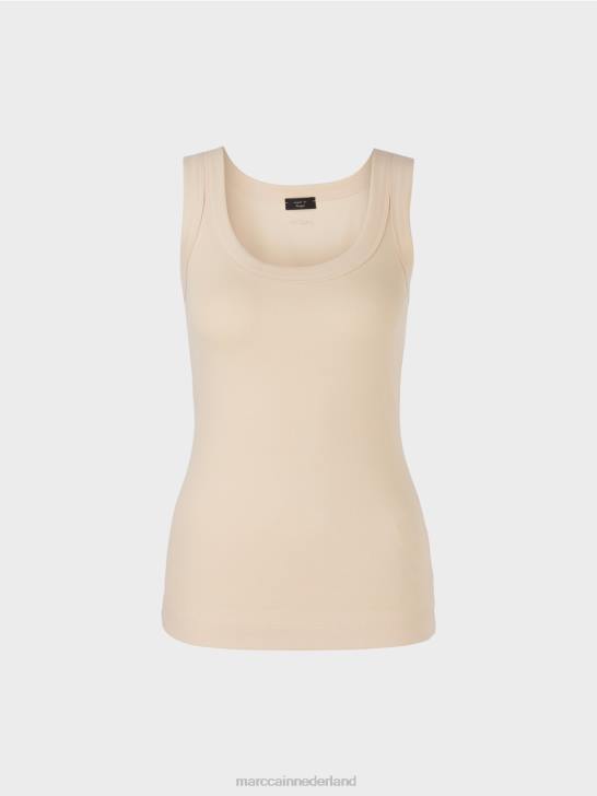 kleding donkere crème 464J1345 fijngeribde tanktop Marc Cain