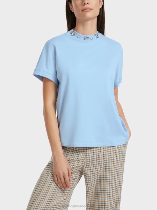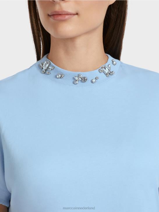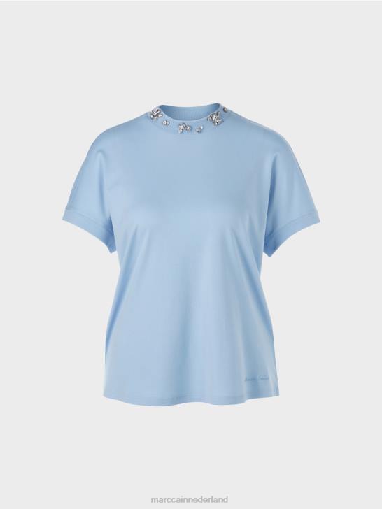 kleding donkere zomerhemel 464J1284 T-shirt met kralenkraag Marc Cain