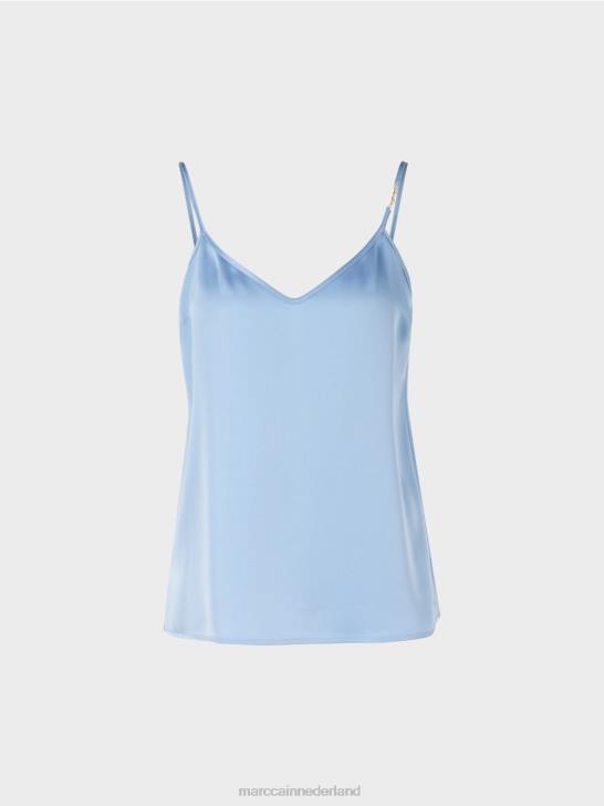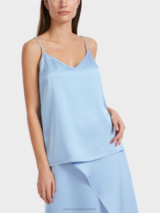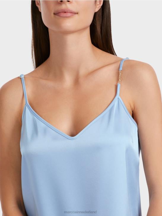 zacht vallende top in een materiaalmix met elastaan. een klein kettinkje aan de verstelbare band geeft dit effen topje een bijzondere touch. het heeft een relaxed silhouet en een v-hals. zijsplitten benadrukken het speelse design.
