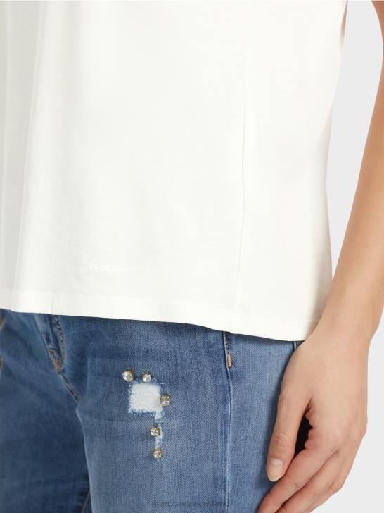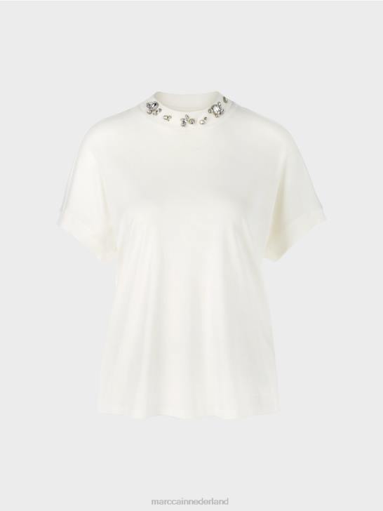 Home| kleding| overhemden en topjes| kleding gebroken wit 464J1285 T-shirt met kralenkraag Marc Cain