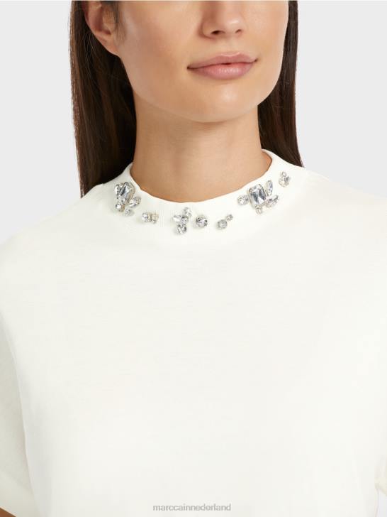 kleding gebroken wit 464J1285 T-shirt met kralenkraag Marc Cain