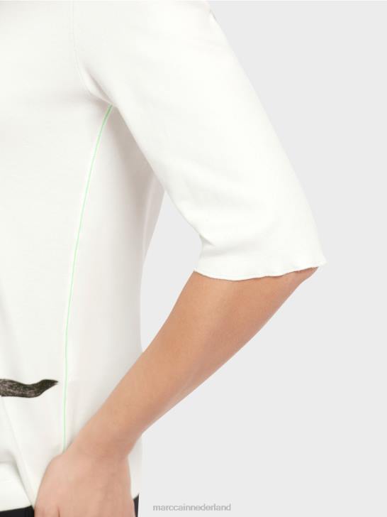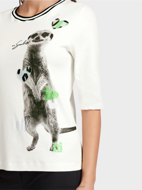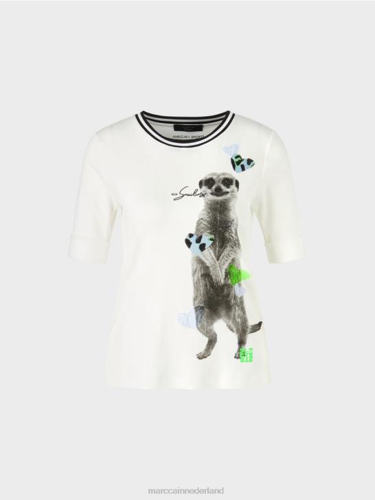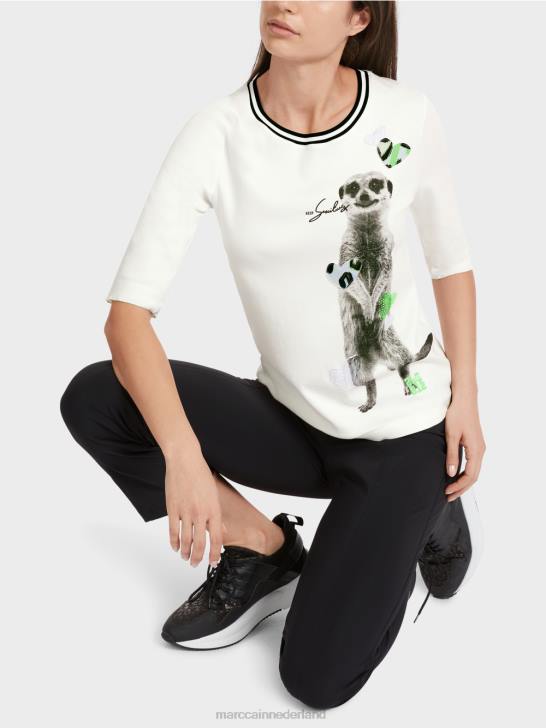 kleding gebroken wit 464J1302 t-shirt met dierenmotief Marc Cain