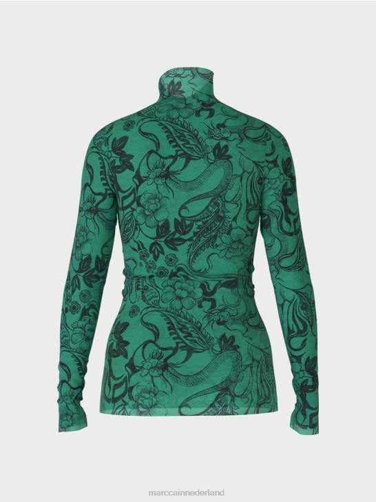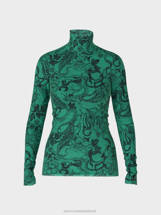 kleding glazuur 464J1244 bedrukte tule longsleeve Marc Cain