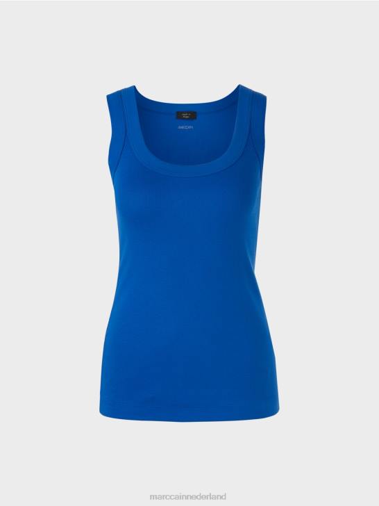 kleding helder koningsblauw 464J1243 mouwloze katoenen ribtop Marc Cain
