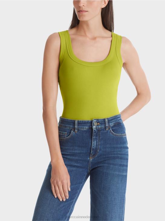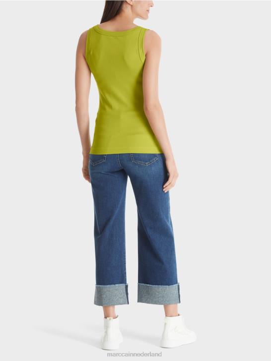 strakke tanktop van katoen met een comfortabel extra spandex-element en een ronde hals uitsnede door Marc Cain. het aansluitende silhouet combineert in dit easy-going basic item met een uiterst fijn geribd dessin. een relaxed must-have item, dat een vleugje nonchalance aan elke garderobe toevoegt.
