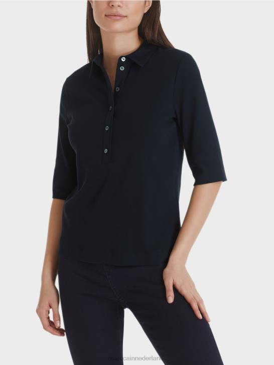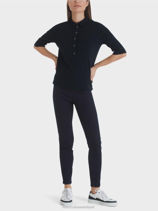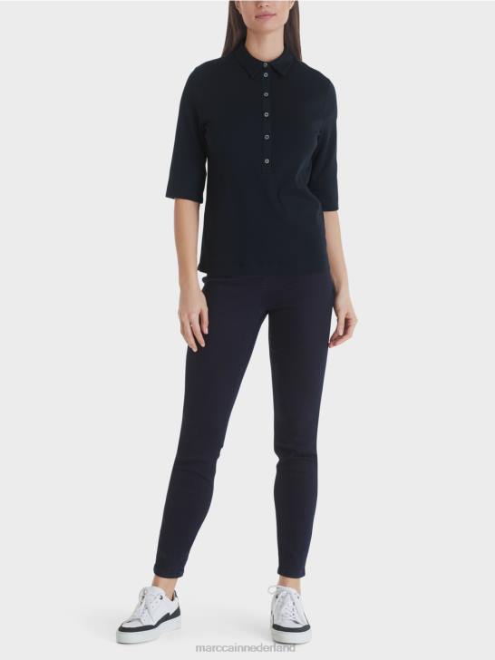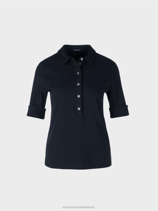 overhemd met rechte snit, polokraag en lange knoopsluiting die afgewerkt kan worden met glinsterende logoknopen. het poloshirt is gemaakt van elastische katoenen ribjersey voor het beste draagcomfort. de halflange mouwen kunnen nonchalant worden opgerold.