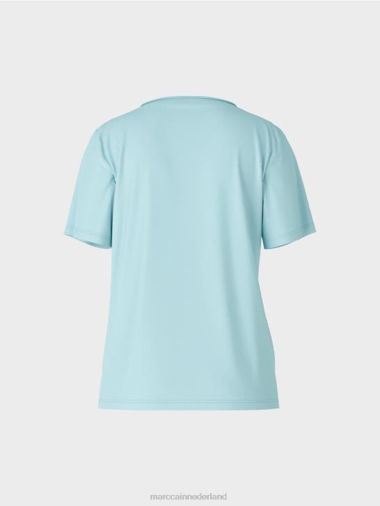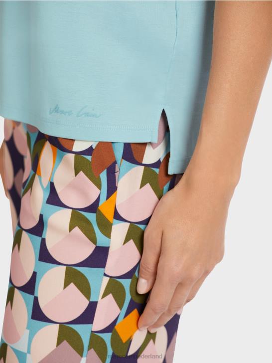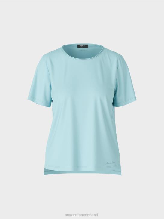 losvallende top van comfortabel stretchkatoen. de top heeft zijsplitten en een langere achterkant. de korte mouwen en ronde hals met rolrand maken het design compleet.