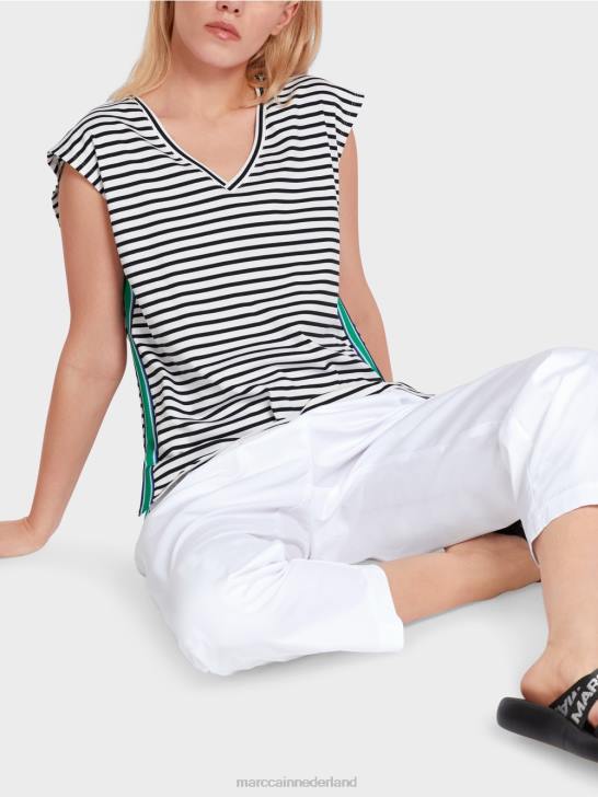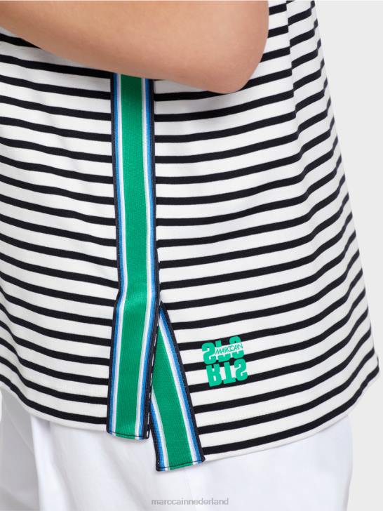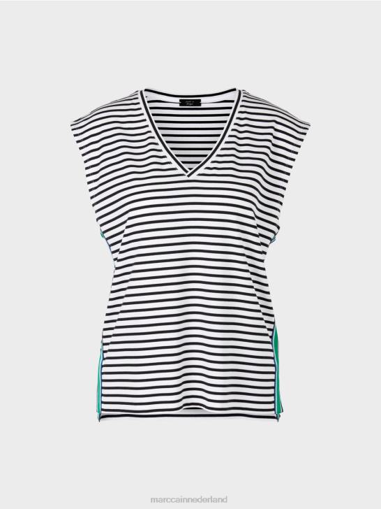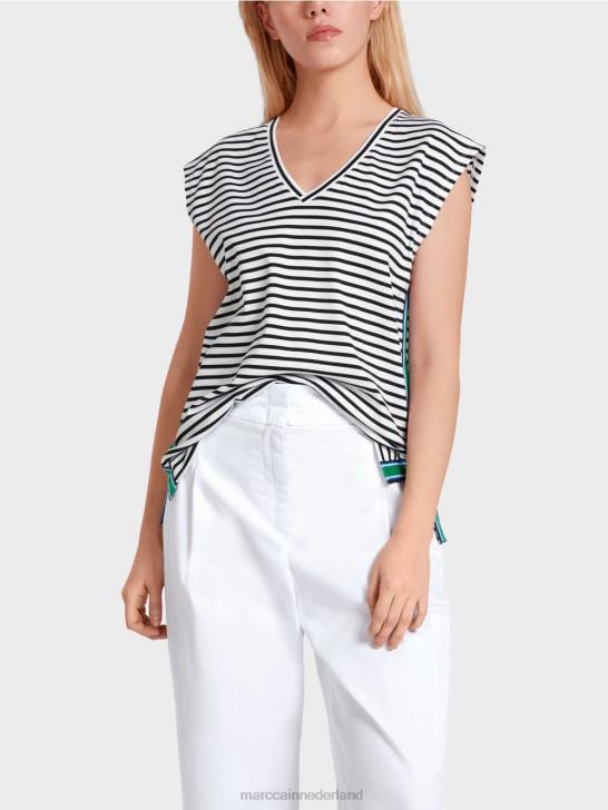sportief shirt van katoen met elastaanaandeel. een ideale aanvulling op de zomergarderobe is dit casual gestreepte overhemd. de zijnaden zijn versierd met een contrasterend koordlint en splitten. verder toont hij zich mouwloos en met een discrete v-hals.