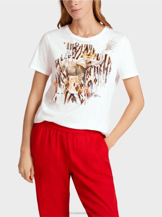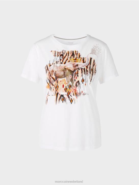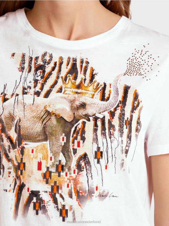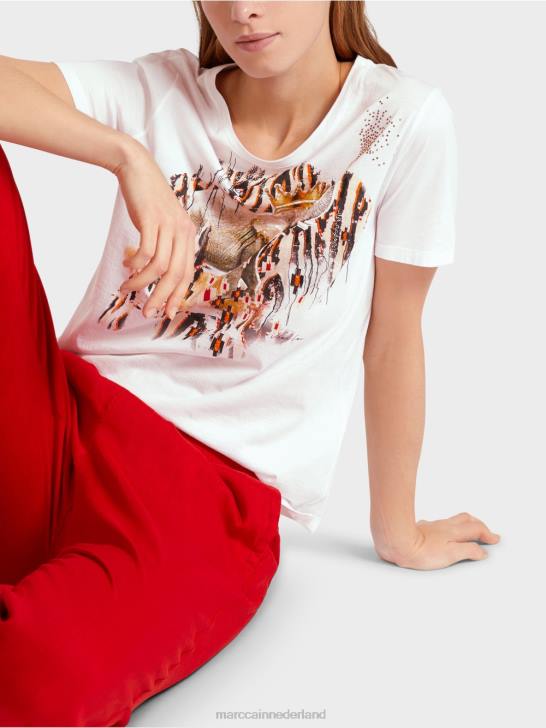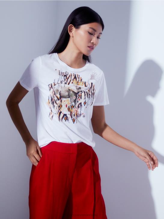 dit t-shirt is gemaakt van ultralicht katoen. het is klassiek gesneden en heeft een motief op de voorkant in collage-design. het motief is een combinatie van tropische fauna afgewisseld met verspreide ikat-vormen. de appliqué strasssteentjes en pailletten zorgen voor opvallende details.