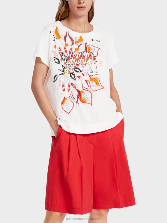 dit t-shirt heeft een boxy snit en nep-kimonomouwen. het is gemaakt van zacht, lichtgewicht katoen. het schouderstuk is gemaakt van een geweven stof die het van jersey onderscheidt van het lichaam. het motief op de voorkant toont tropische fauna en flora en creëert impact met een combinatie van print, borduursel, kralenwerk en paillettenapplicaties.