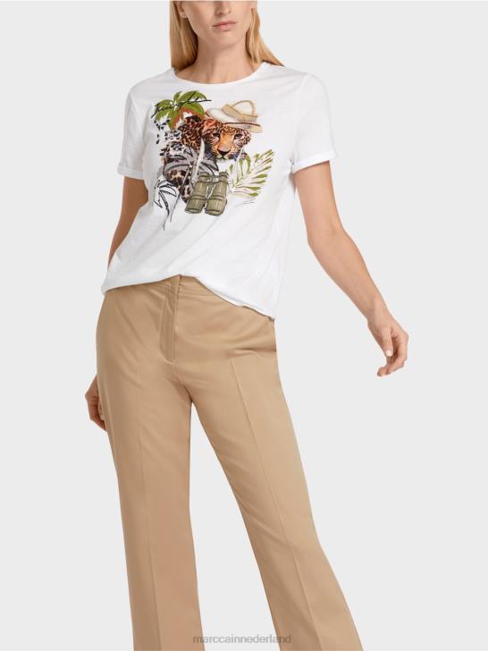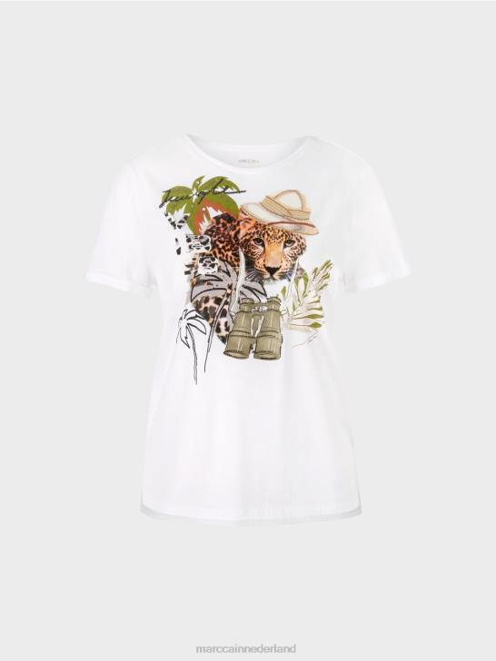 losjes vallend t-shirt van zacht, lichtgewicht katoen. stijlvolle elementen zijn de smalle manchetten aan de korte mouwen, de zijsplitten en het iets langere rugpand. het collage-achtige motief aan de voorkant creëert een impact door de samensmelting van print en appliqué. glinsterende stenen geven het motief een vleugje glamour.