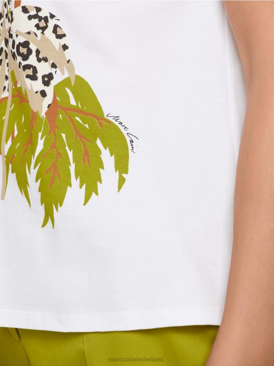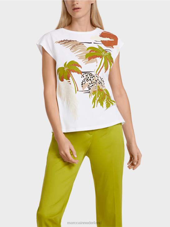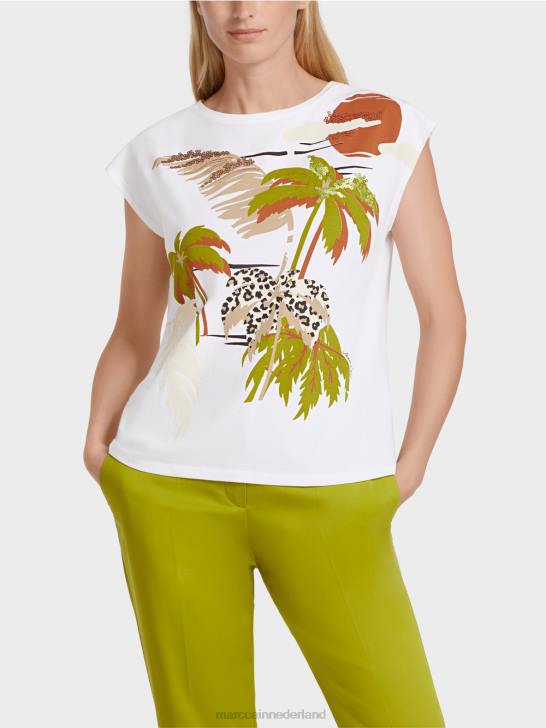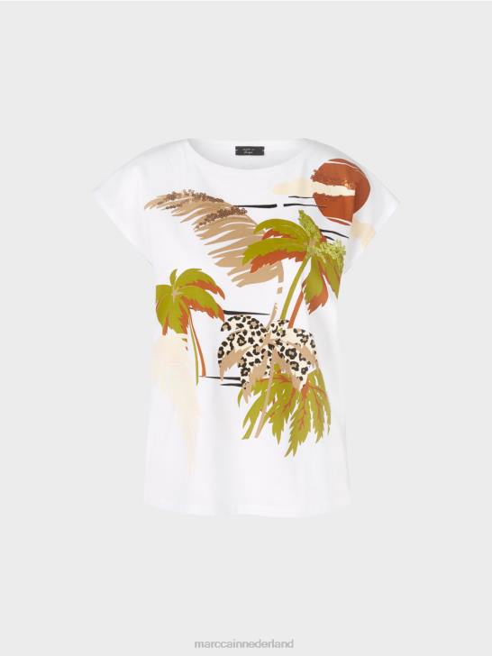 dit t-shirt is gemaakt van zacht, lichtgewicht katoen en draagt het duurzaamheidslabel "rethink Together" . het heeft een nep-kimono-look en een boxy-snit. het collageachtige motief toont impressies van een tropisch landschap. de print wordt geaccentueerd met paillettendetails.