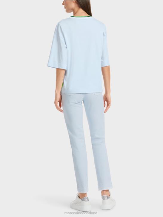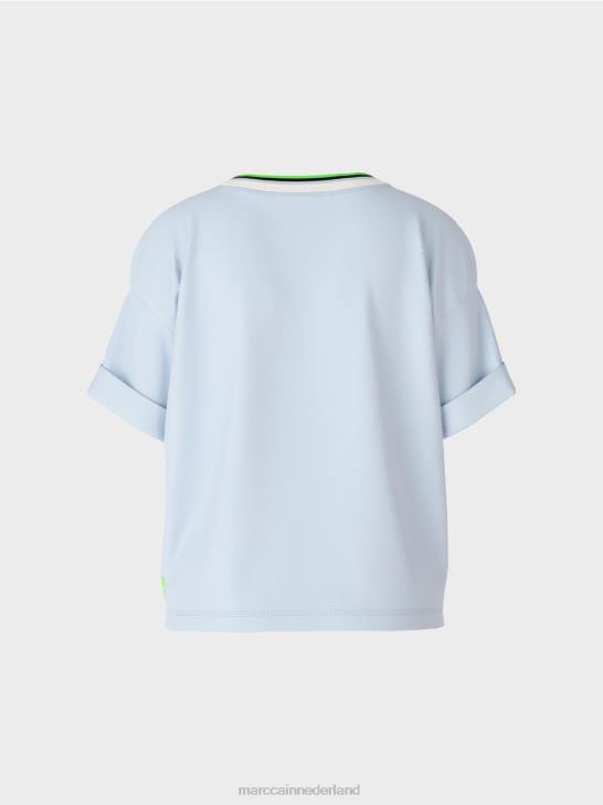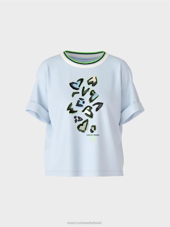 het t-shirt is gemaakt van soepel katoen. het heeft een boxy-snit en smalle manchetten aan de korte mouwen. het printmotief is graffiti-geïnspireerd. delen van het motief zijn omzoomd met aangebrachte koorden in fluorkleur. de kleuren van de print worden herhaald in de rand van de halslijn. het artikel draagt het duurzaamheidslabel ‘samen heroverwegen’.