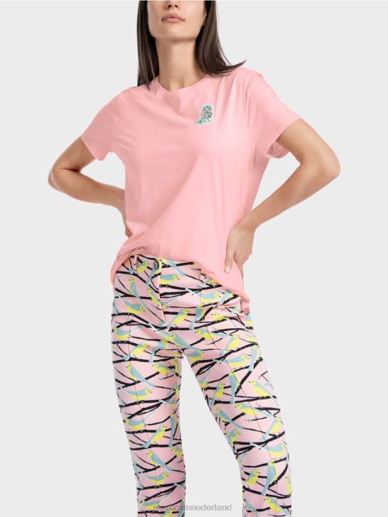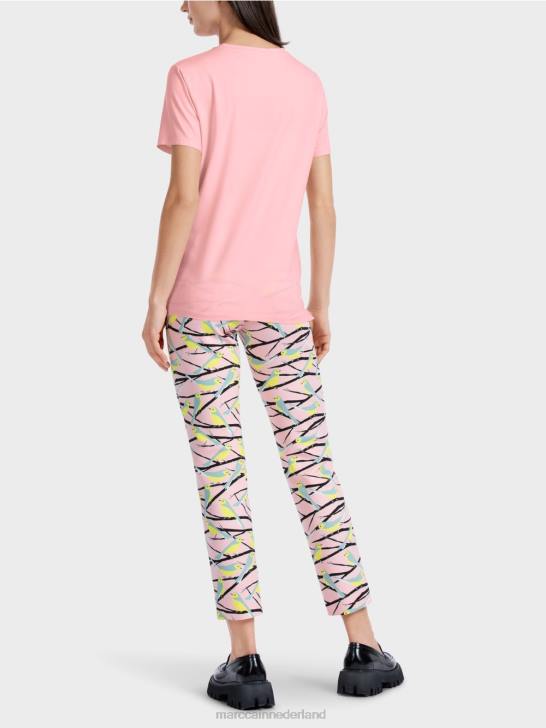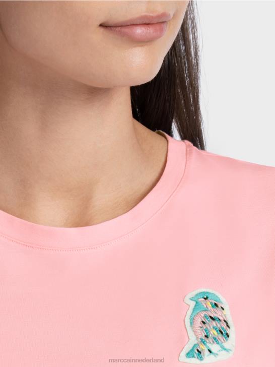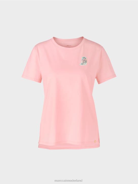 T-shirt van rekbaar katoen. een vogelapplicatie met kralen aan de linkerkant van de borst trekt de aandacht. Het heeft een nauwsluitende snit, een verlengde rug en splitten. een wijde ronde halslijn en kwartmouwen maken de stijl op een sportieve manier compleet.