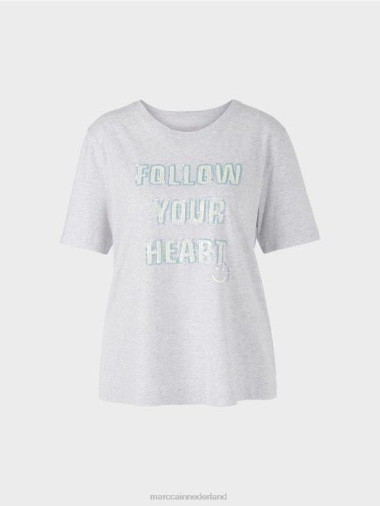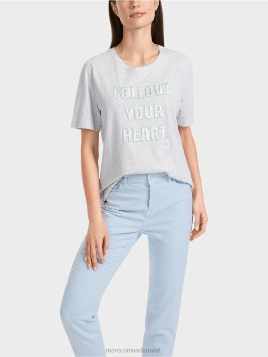 t-shirt met klassieke snit en effectief motief: de slogan 'follow your heart' is aangebracht met fluorescerende pailletten en zwart ingelijst.
