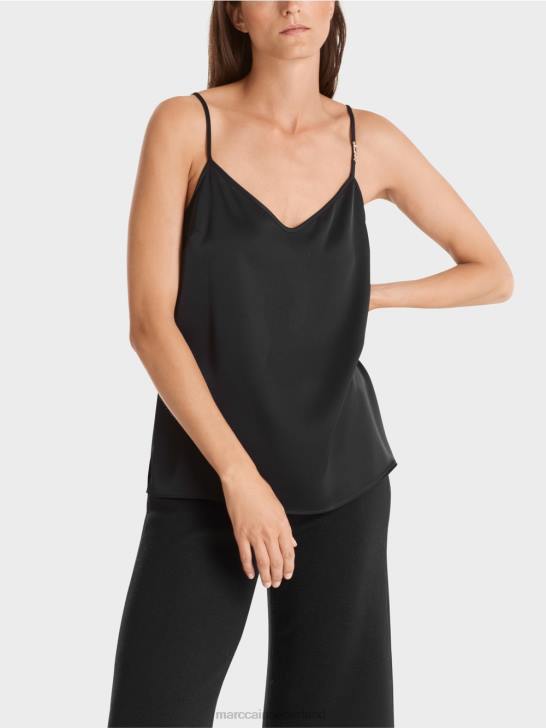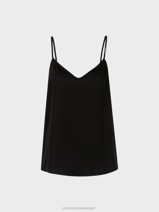 zacht vloeiende top in een materiaalmix met elastaan. een klein kettinkje aan de verstelbare band geeft dit effen topje een bijzondere touch. het heeft een relaxed silhouet en een v-hals. zijsplitten benadrukken het speelse design.