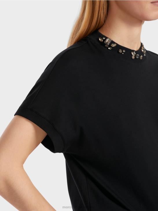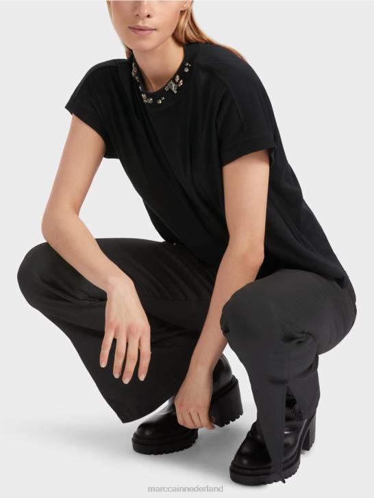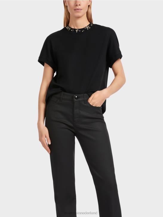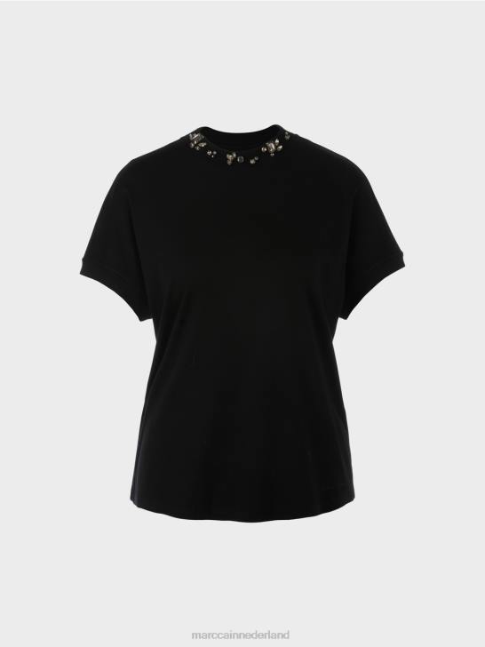 losvallend t-shirt van katoen. De eyecatcher van dit t-shirt is het glanzende kralenborduurwerk op de opstaande kraag. het ontwerp met uitgesneden mouwen is net zo ongebruikelijk. het rechte silhouet geeft een dosis nonchalantheid aan deze vrouwelijke top.