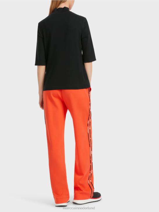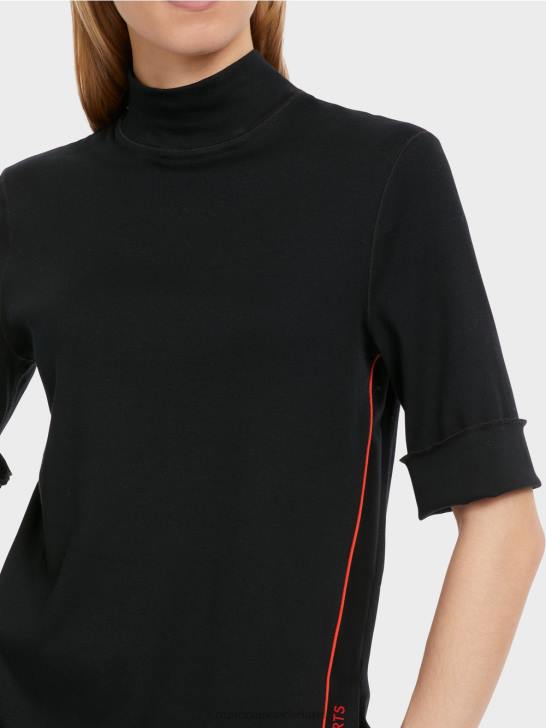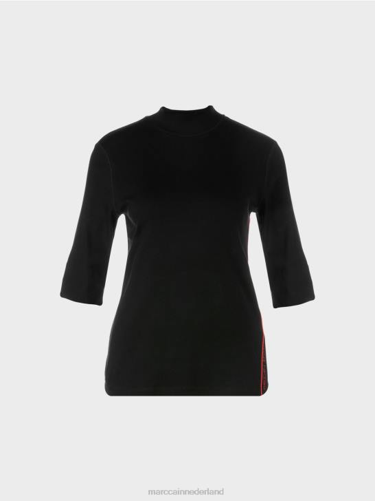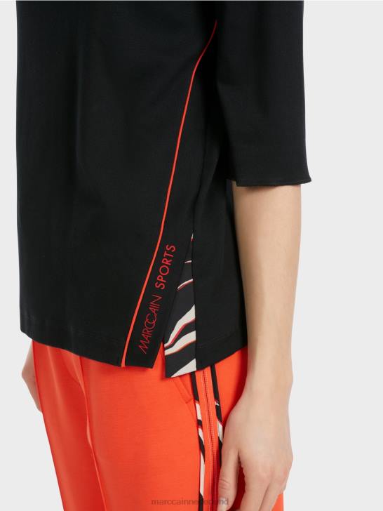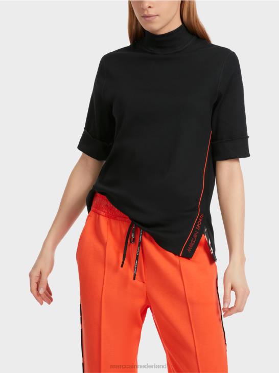 het shirt heeft een slim fit en is gemaakt van flexibele ribjersey. het modieuze aspect komt via de -mouwen en de opstaande kraag. verrassend genoeg het asymmetrische ontwerp. de linkerzijnaad is ontworpen met contrasterende biezen, een zijsplit met patroonrand en de woorden 'marc cain sports'.