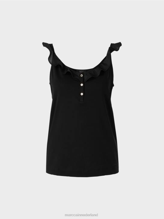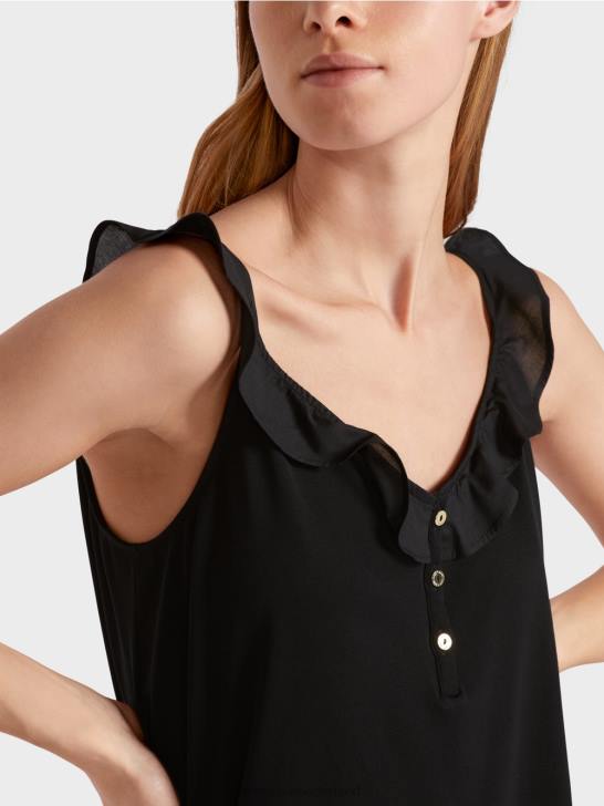 centraal staat de volant die zowel als kraag als als riem fungeert. het is gemaakt van een lichtgewicht katoenen stof en geeft de top een luchtig karakter. de decoratieve knoopsluiting met delicate goudkleurige knopen past perfect bij dit exemplaar.