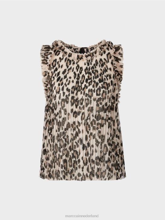de top is helemaal geplooid. zowel de mouw als de halslijn zijn afgezet met ruches. het materiaal is licht en zacht en voelt zacht aan op de huid. de bovenkant heeft een open voorkant en is gemakkelijk aan te trekken.