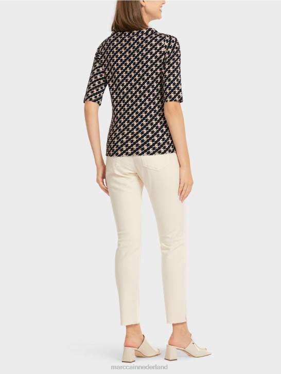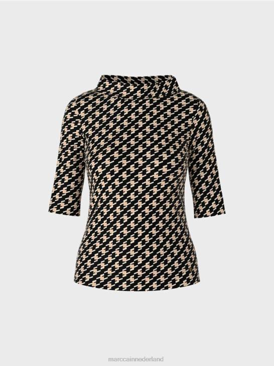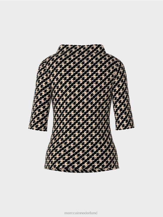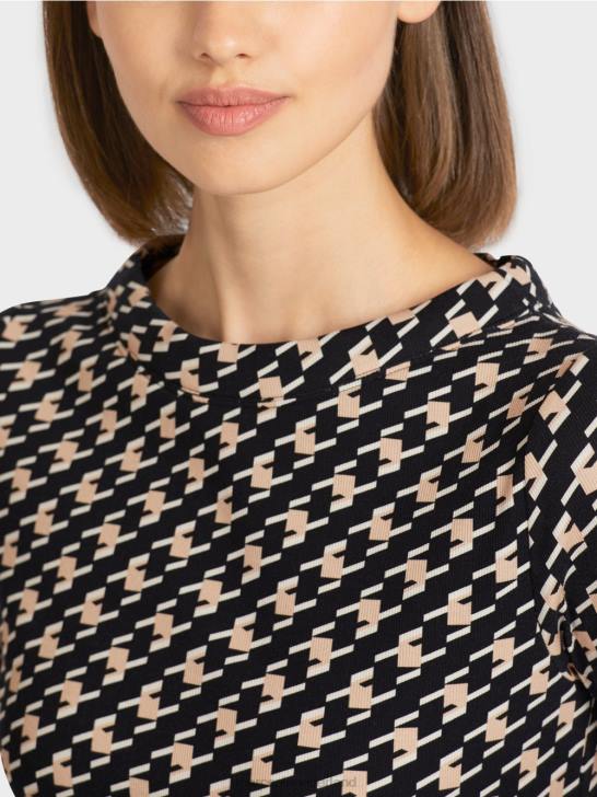 extravagant t-shirt met nauwsluitend silhouet van zachte katoenen stof met elastaan. dit t-shirt is versierd met een all-over herdersruitje. Het heeft driekwartmouwen die nonchalant kunnen worden opgerold. een brede ronde hals rondt de look af.