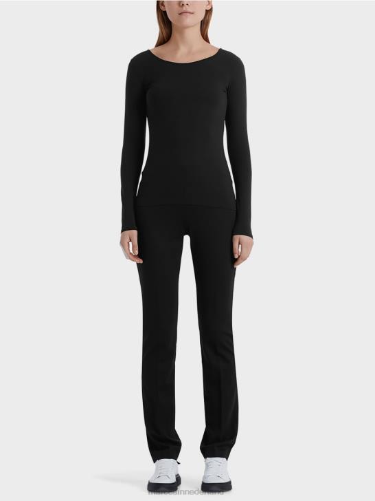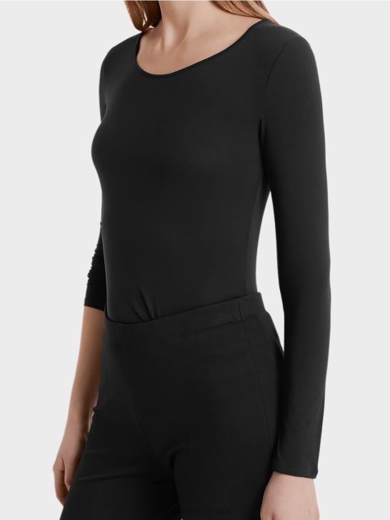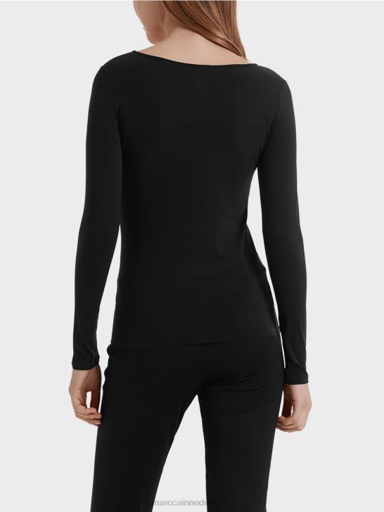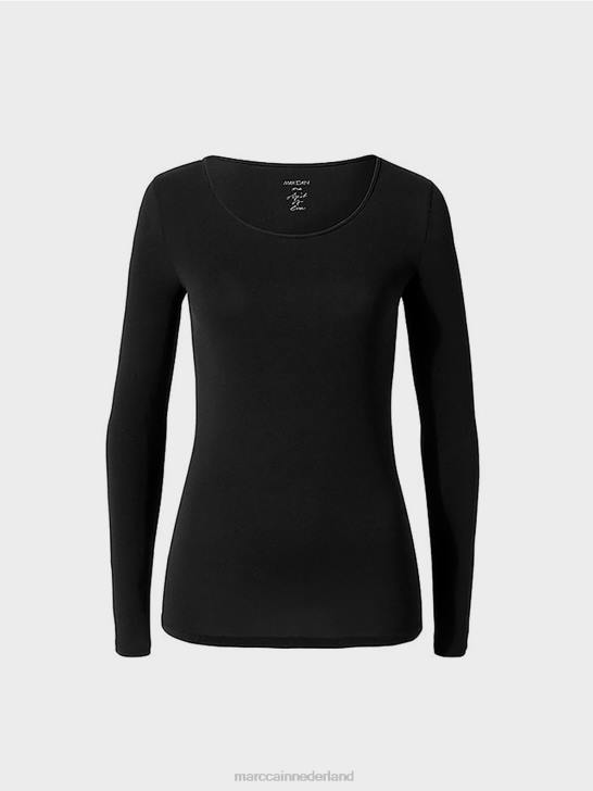 hoogwaardig shirt met ronde hals en lange mouwen in een superfijne, discrete transparante materiaalmix van marc cain. dubbele doorgestikte manchetten en zoom, plus een glinsterende logoprint aan de binnenkant van de nek ronden het ontwerp van deze strakke allrounder af.