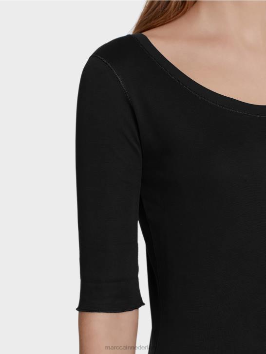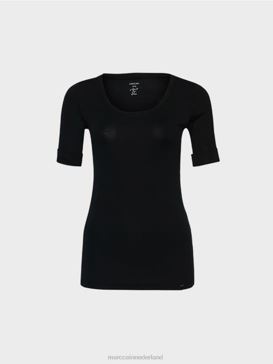 een eenvoudige stijl in de beste kwaliteit: dat is dit strakke overhemd met halve mouwen en een wijde ronde halsuitsnijding. het zachte katoen met toegevoegde spandex en de geavanceerde productietechnieken voldoen aan de meest veeleisende verwachtingen. de geappliqueerde edelsteen aan de voorkant boven de zoom zorgt voor een extra stijlvolle touch.