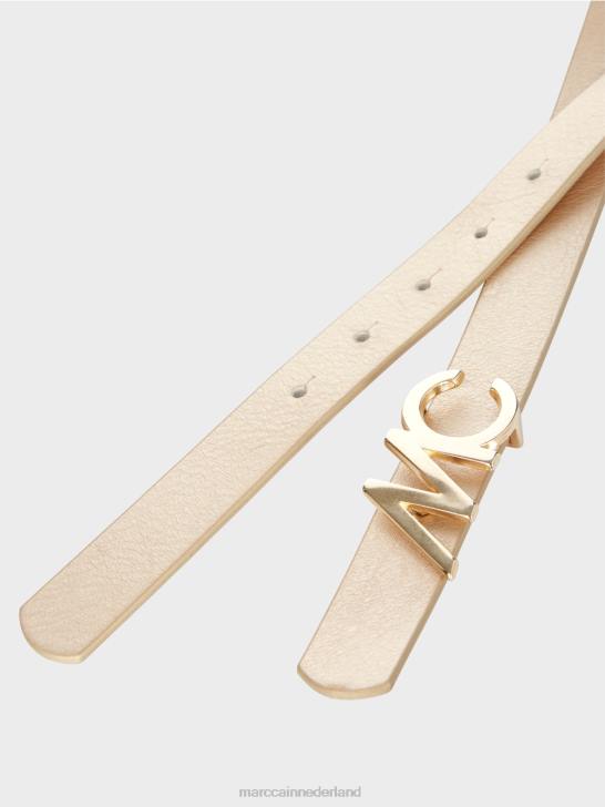Gemaakt van gecoat nappaleer, deze heupriem is een mooi accessoire. Het wordt geleverd met een goudkleurige metalen MC-logogesp. dankzij het speciale ontwerp is de riem aan beide zijden te dragen.