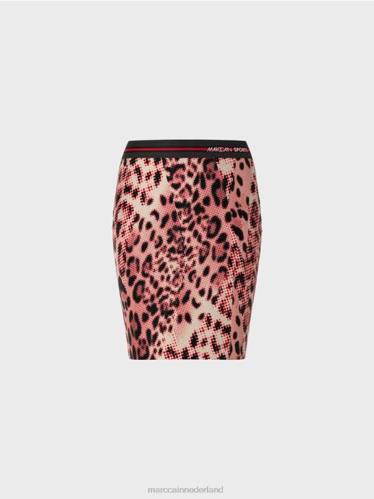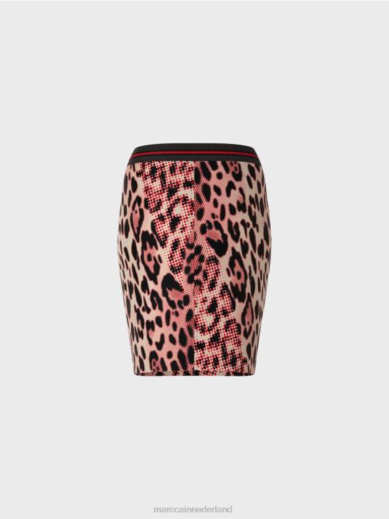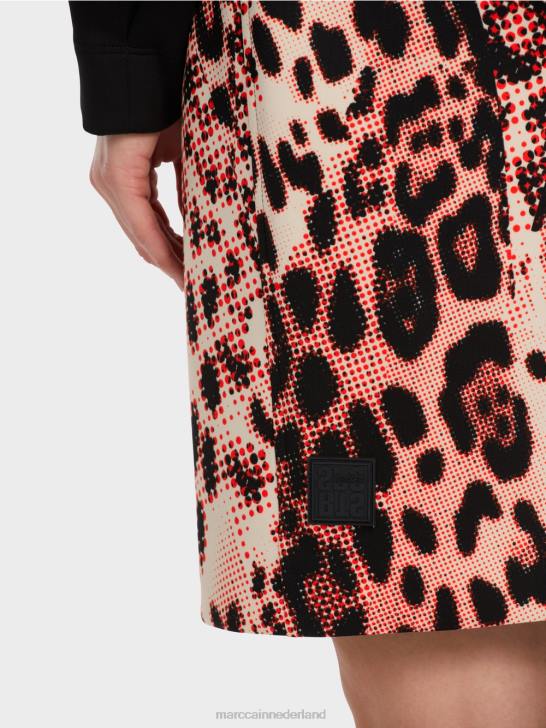 het superflexibele materiaal en de elastische tailleband maken de minirok gemakkelijk te dragen. de rok is geheel gevoerd, waardoor een harmonieuze contour ontstaat. het computergestuurde leo-ontwerp, dat een patchwork-achtige uitstraling heeft, is stijlvol.