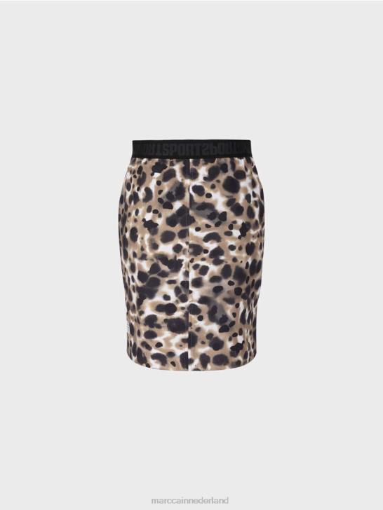 figuuraccentuerende rok met elastaan. deze minirok heeft een coole all-over luipaardprint. het belooft uitstekend comfort dankzij de stretchstof. de elastische tailleband is uitgevoerd in een contrasterende kleur met rondom mc-letters.