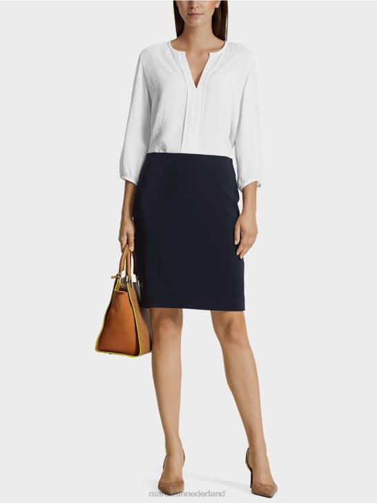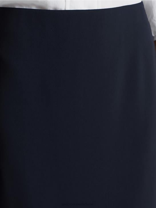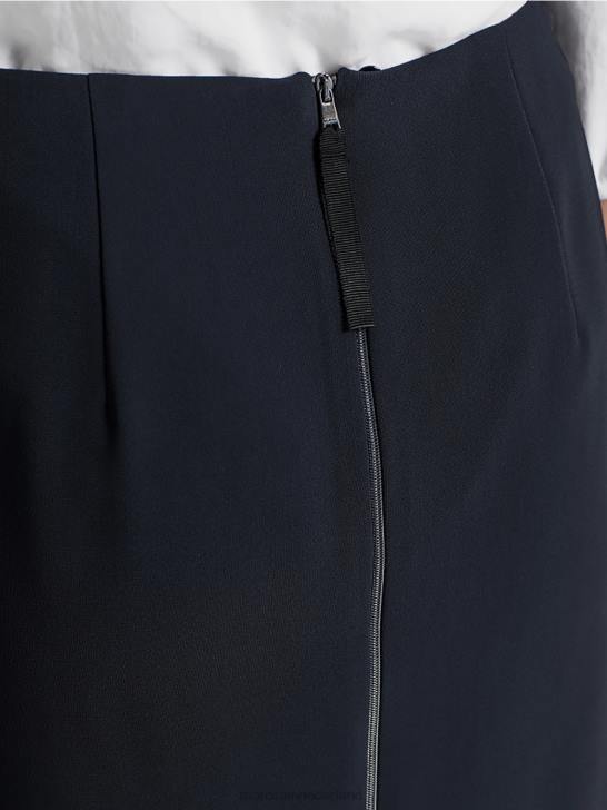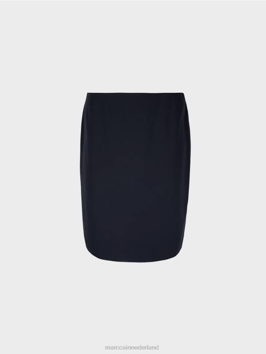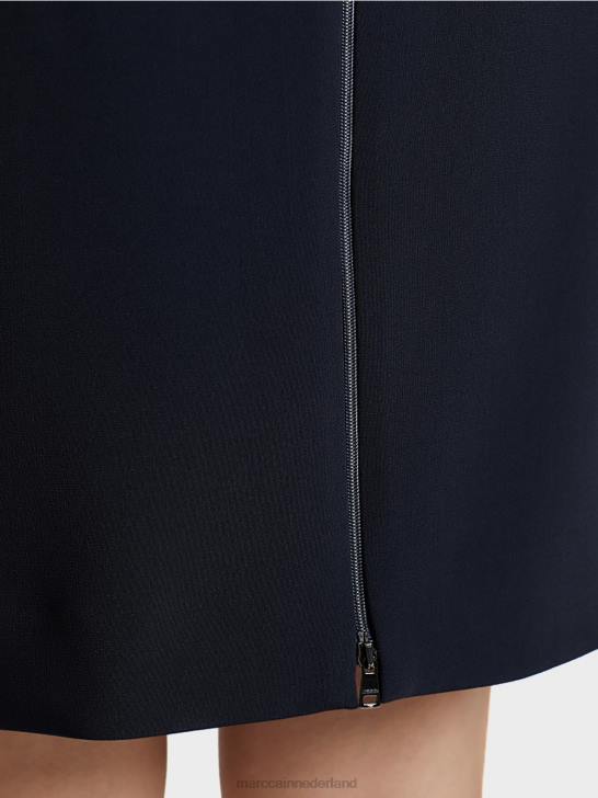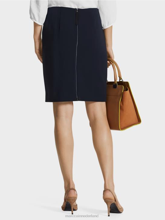 knielange rok in fijne crêpe kwaliteit. De rok wordt aan de achterkant gesloten met een doorlopende ritssluiting en kan daardoor variabel worden gesplitst. de elastische tailleband zorgt voor een hoog draagcomfort.