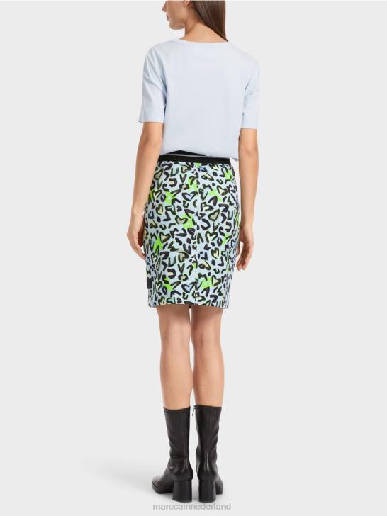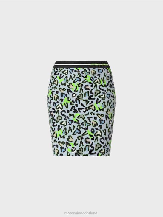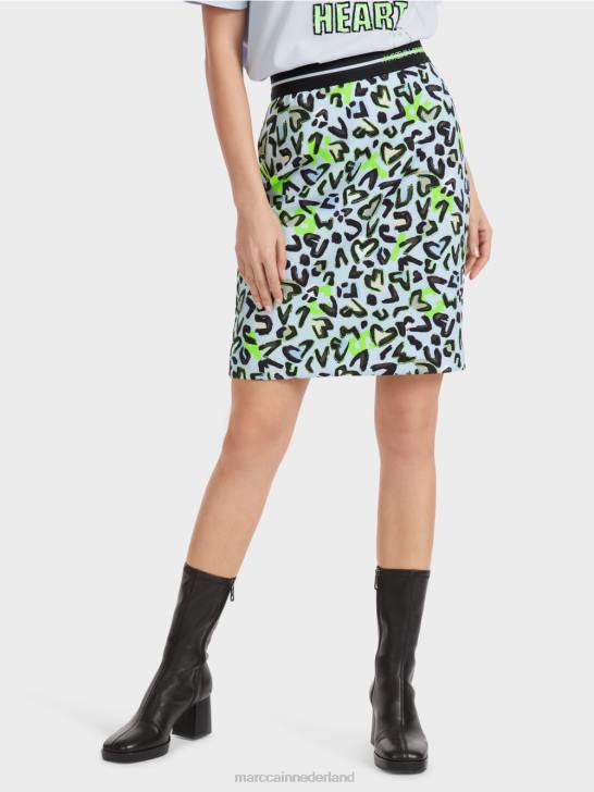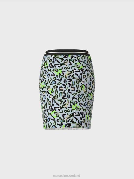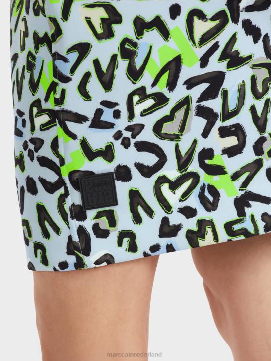 de minirok is smal gesneden en heeft een decoratieve stretchband in de taille. het dynamische ontwerp is graffiti-geïnspireerd. de voering geeft het een harmonieuze contour.