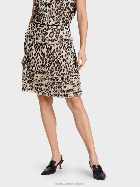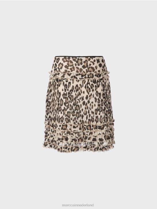 deze rok is afgewerkt met een juk in de taille. de plooien zorgen voor veel bewegingsvrijheid. de franjes geven het het nodige gewicht. Hierdoor ontstaat er een spannende oppervlaktestructuur die past bij de luipaardprint.