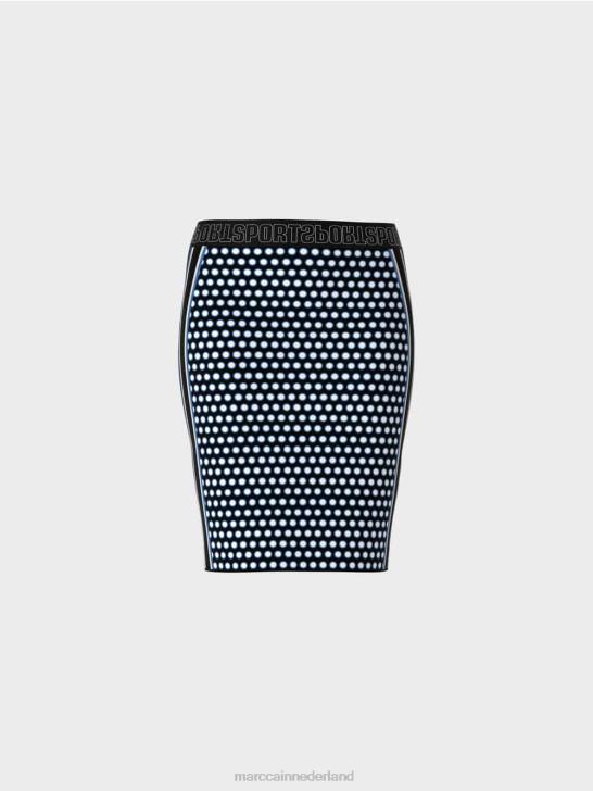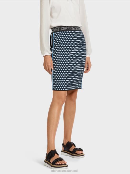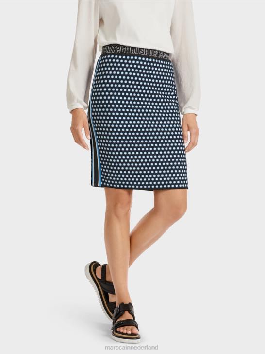 deze nauwsluitende rok is gemaakt van stretchy gebreide viscose. de kleuren van het stippendessin worden herhaald in de sportieve zijstrepen. de elastische tailleband benadrukt de taille en de voering zorgt voor een gladde contour. de rok wordt gebreid en afgewerkt in ons bedrijf in Duitsland. de verdere verwerking van de afzonderlijke stukken wordt uitgevoerd door onze partnerbedrijven in Europa. dit maakt de stijl "gebreid in Duitsland".