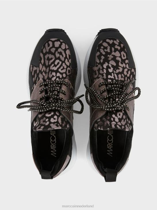 chique sneakers gemaakt van een mix van materialen met leer. met zijn opvallende leo-ontwerp presenteert deze sportschoen een vrouwelijke stijl. de vetersluiting loopt door een glanzend lipje. dankzij de vulling rond de enkels zit de schoen zeer comfortabel. de slanke vorm is afgerond en heeft een uitlopende hak.