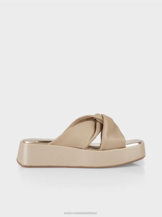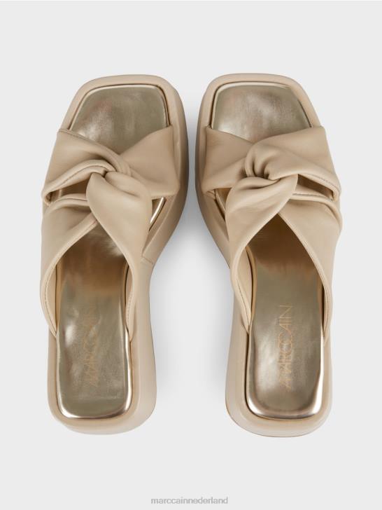 elegante muiltjes met zachte bandjes. het mooie geknoopte detail op het gekruiste bandje geeft deze slip-ons een vrouwelijke touch. het zachte voetbed heeft een bijpassende prachtige glans. De schoenen hebben een hoogwaardige omwikkelde sleehak en een eigentijdse vierkante vorm. de buitenzool met Marc Cain-opschrift in reliëf is een charmant extraatje.