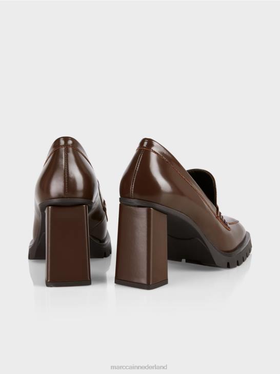 helemaal up-to-date, deze pumps pronken met een hoge, bedekte blokhak. ze zijn gemaakt van fijn glad leer en hebben vierkante neus. de wreef is versierd met een verlengde tong, stiksels en een splitbandje. de geprofileerde rubberen zool zorgt voor een trendy contrast.