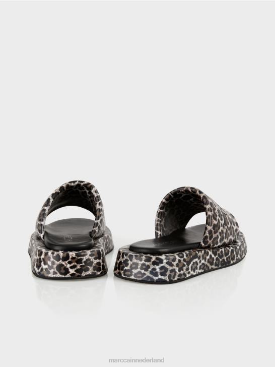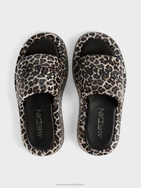 trendy sandalen met bandje en comfortabel voetbed. deze sandalen hebben een prachtig all-over luipaardpatroon. de brede band is voorzien van mc-letters. de gegolfde rubberen zool zorgt voor slipweerstand.