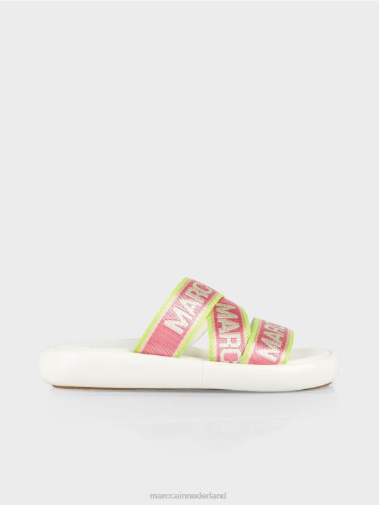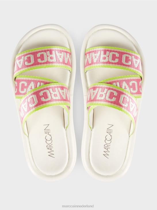 casual sandalen met ronde buitenlijn en iets verhoogde zool. Deze sandalen zijn ideaal voor sportieve looks met hun opvallende Marc Cain-opschrift op drie geribde lintbanden. de ronde zool zorgt voor een eigentijds accent. het voetbed is comfortabel gevoerd. de buitenzool zorgt voor grip op natte oppervlakken.