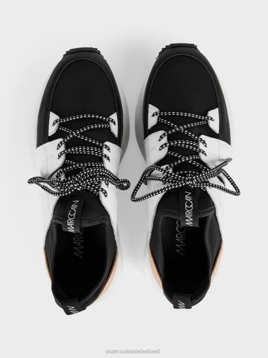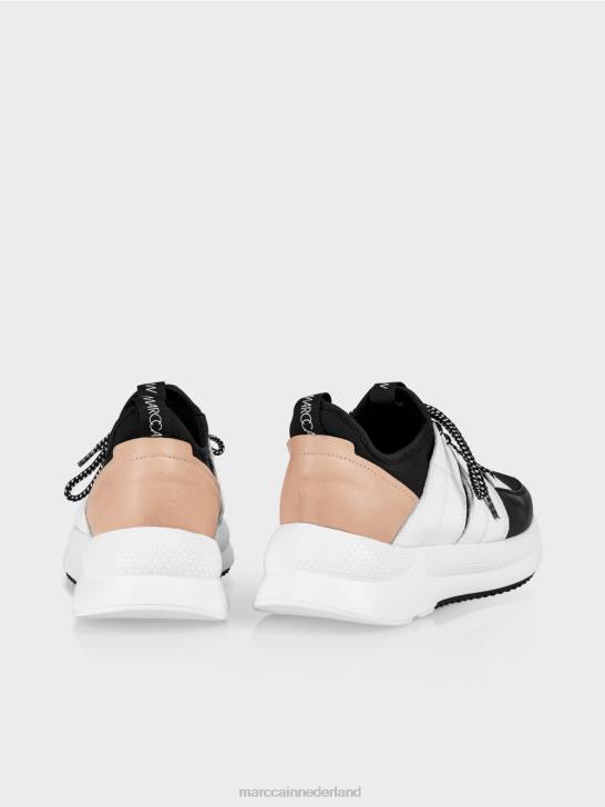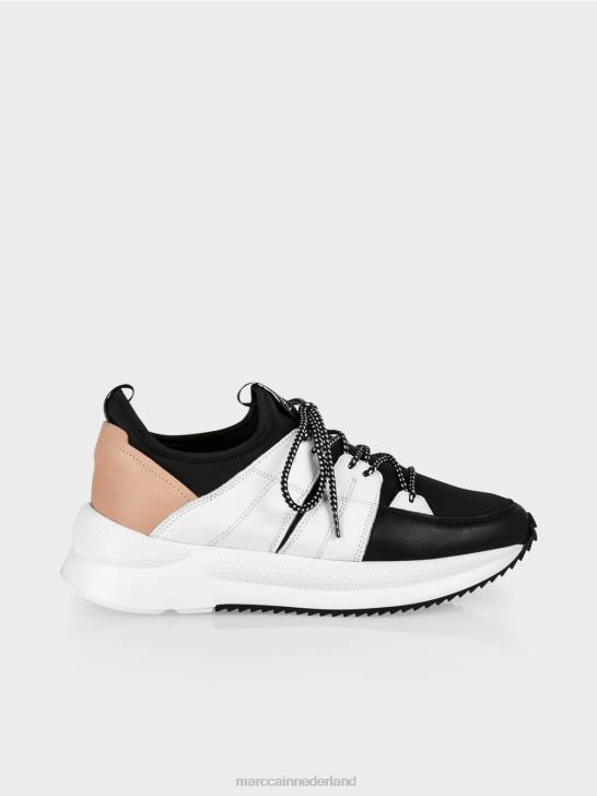 sportieve sneakers in gemêleerde kleuren met een licht uitlopende zool. Deze sneakers zijn met hun veelkleurige design geïnspireerd op sportieve golfschoenen. de vetersluiting is met tussenpozen verdeeld en is ook tweekleurig. deze gestroomlijnde schoenen hebben een afgeronde neus aan de voorkant. de zool is licht uitlopend in een eigentijdse stijl. zachte vulling zorgt voor een comfortabele pasvorm.