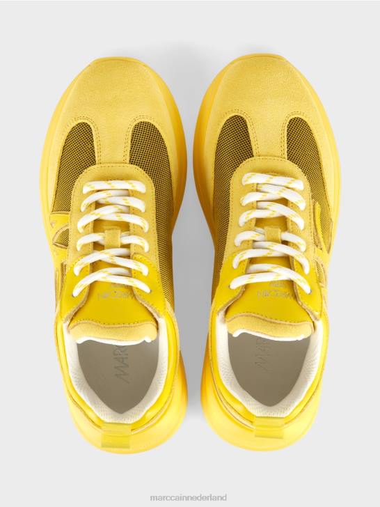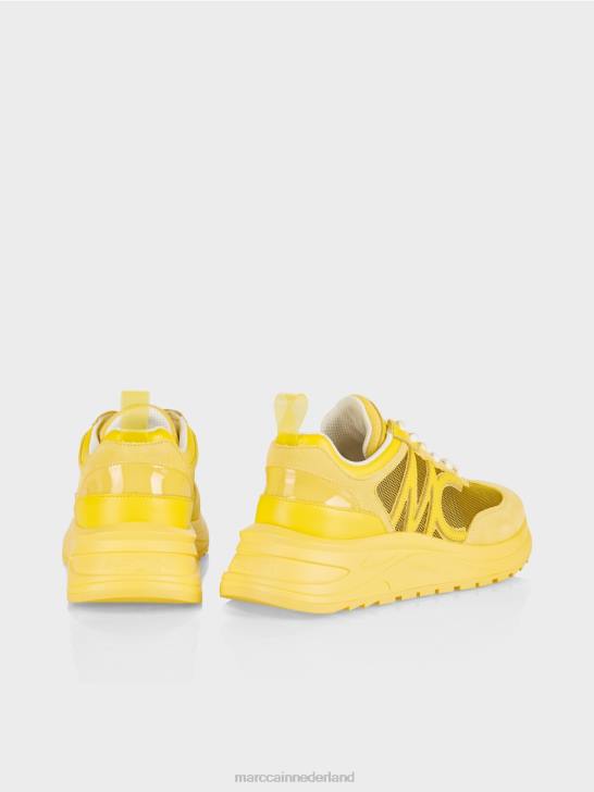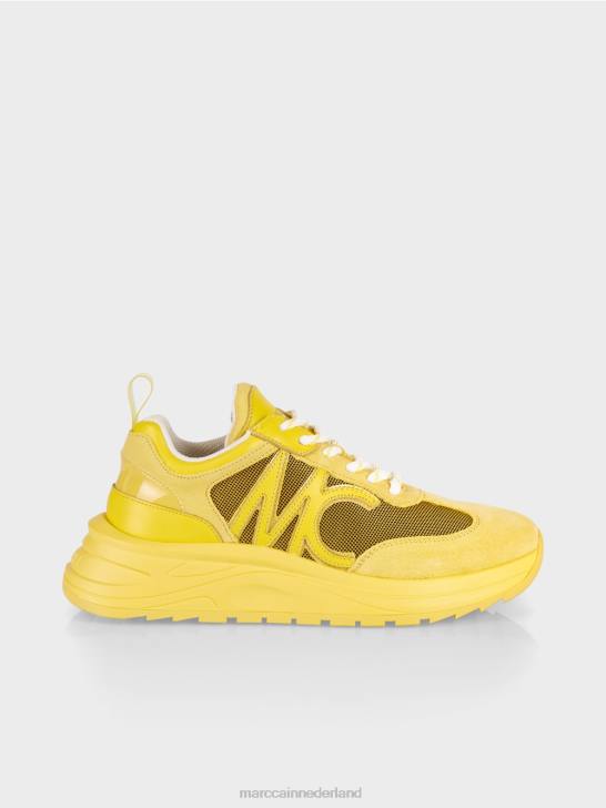 eigentijdse sneakers met sportieve veters in touwlook. Deze sportieve sneakers overtuigen door een succesvolle materiaalmix van mesh en leer. de zijkant is versierd met een geïntegreerd mc-logo, terwijl de buitenzool is voorzien van een leeuwenkop-reliëf. een uitlopende hak benadrukt de trendy stijl. gewatteerde details rond de enkels zorgen voor uitstekend comfort.
