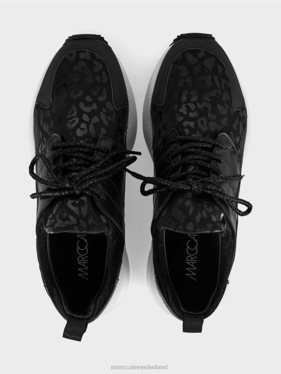 chique sneakers gemaakt van een mix van materialen met leer. met zijn opvallende leo-ontwerp presenteert deze sportschoen een vrouwelijke stijl. de vetersluiting loopt door een glanzend lipje. dankzij de vulling rond de enkels zit de schoen zeer comfortabel. de slanke vorm is afgerond en heeft een uitlopende hak.